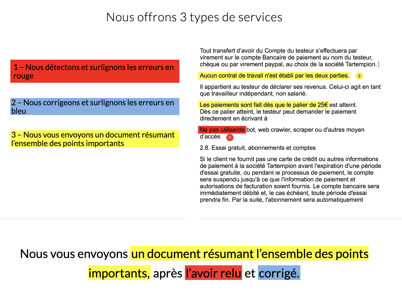 Notre rédacteur ou rédactrice relit 2 fois son contenu, puis nous appliquons une couche de correction automatique à l’aide d’un logiciel, et enfin, notre correctrice repasse une dernière fois. Jusqu’à 99% des fautes sont éradiquées.